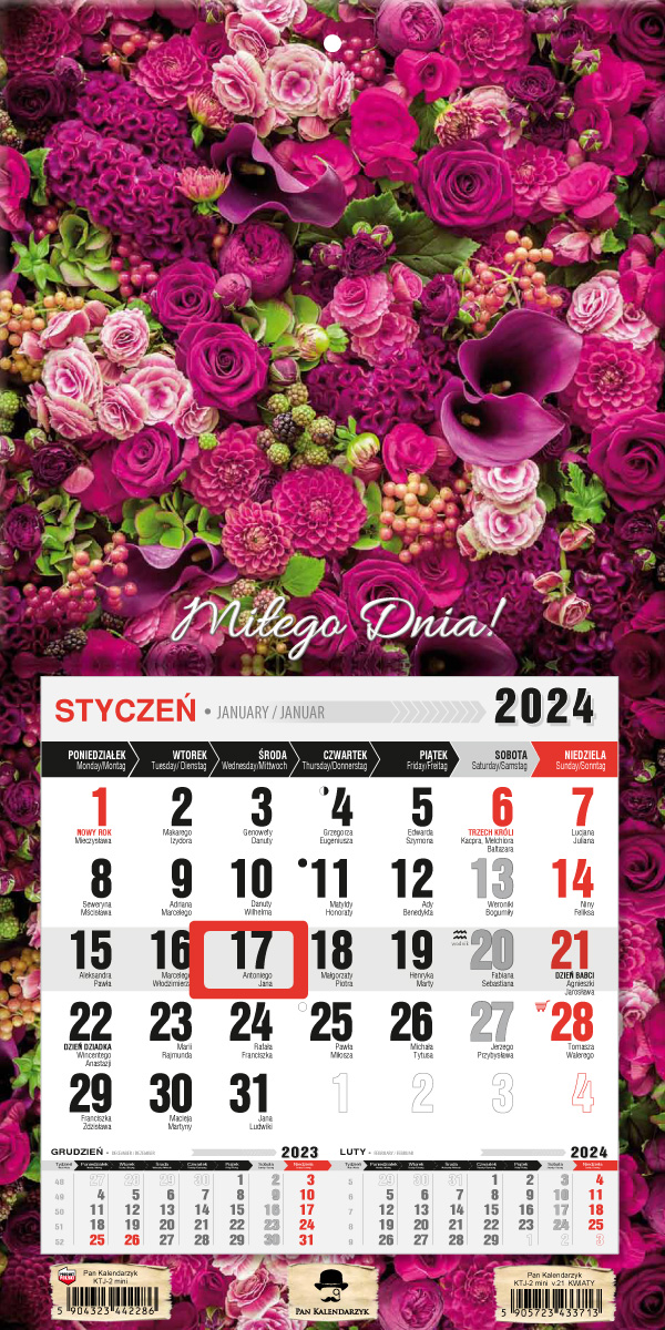 Opakowanie Kalendarz 2024 trójdzielny MINI jednodzielny z magnesem kwiaty KTJ2M-V.21