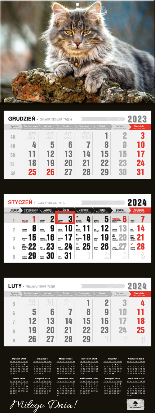Opakowanie Kalendarz 2024 trójdzielny premium kot KT2-V.47