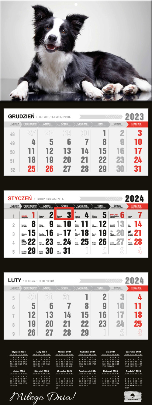 Kalendarz 2024 trójdzielny premium pies KT2-V.46
