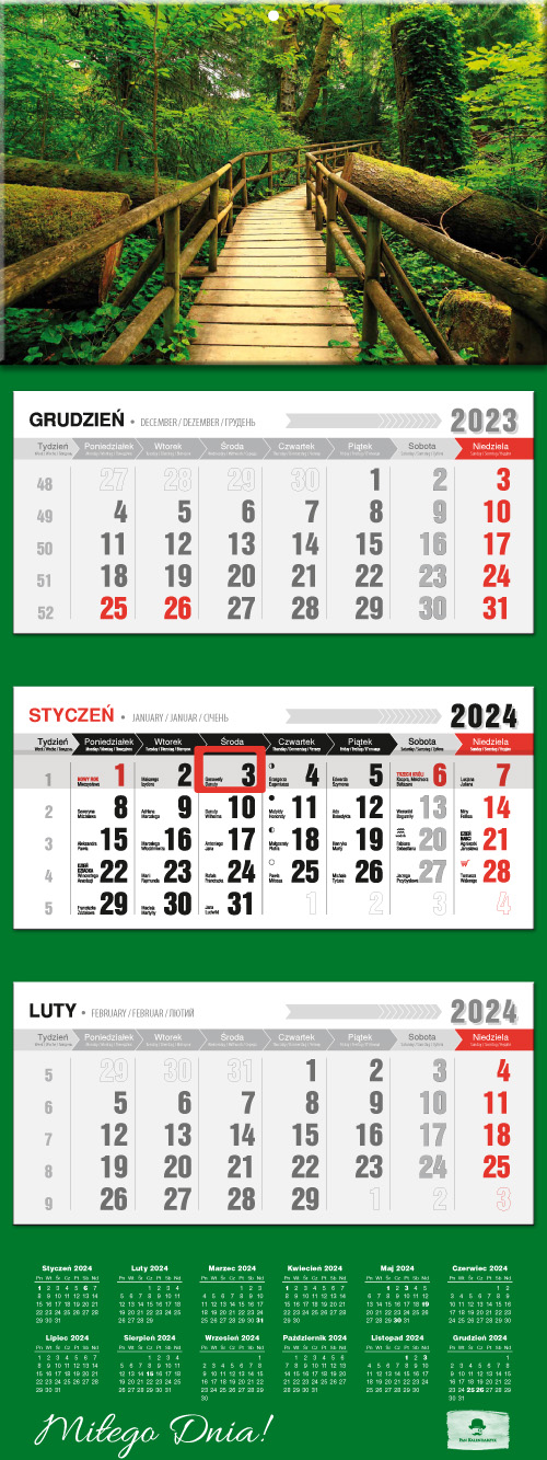 Opakowanie Kalendarz 2024 trójdzielny premium uroczy las KT2-V.51