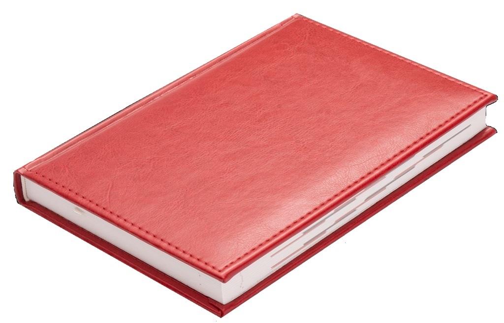 Blok kalendarza szyty oraz dodatkowo klejony, wzmocniony krepą, tasiemka oraz kapitałka w kolorze kremowym, perforacja narożników