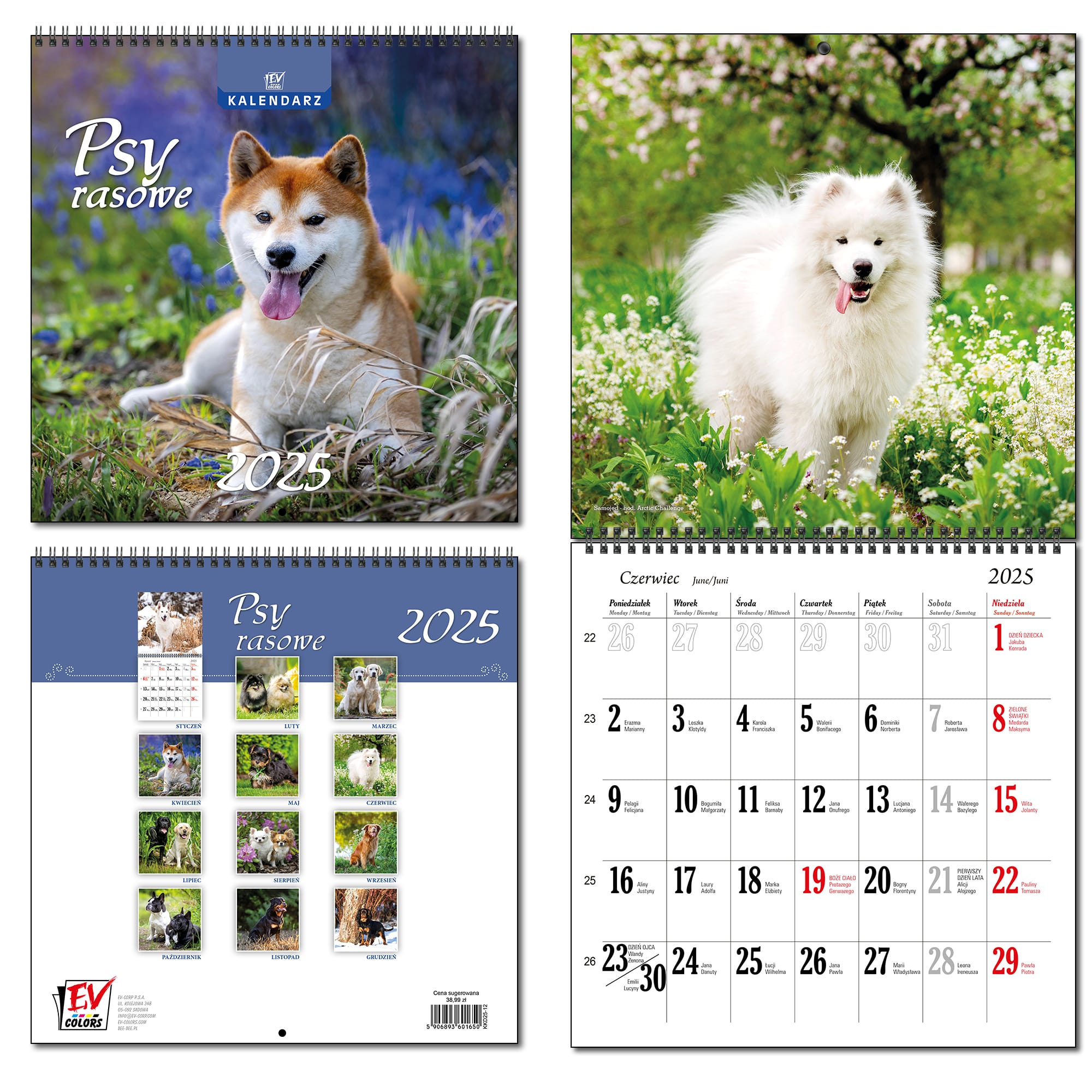Kalendarz 2025 30x60 13 planszowy Psy Rasowe