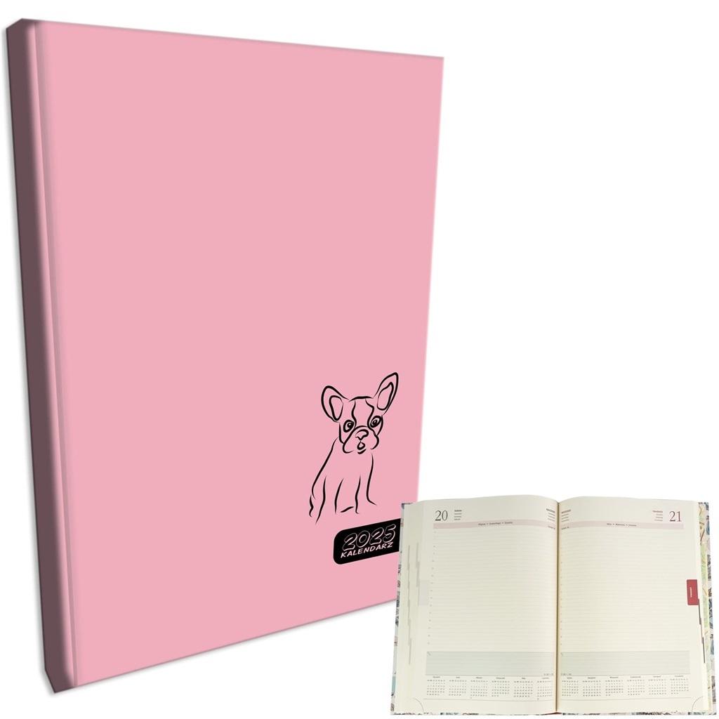 Kalendarz 2025 A4 dzienny sb/nd osobno Buldog Róż