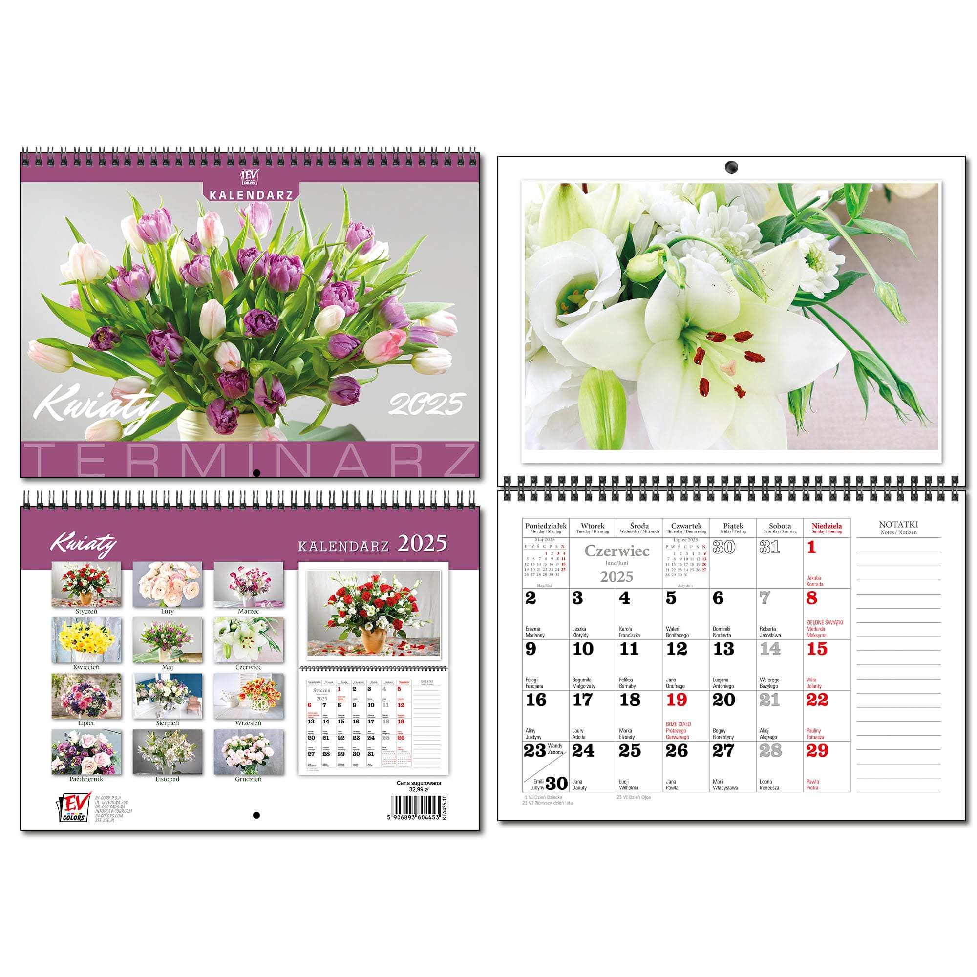Kalendarz 2025 A4 terminarz 13 plansz Kwiaty