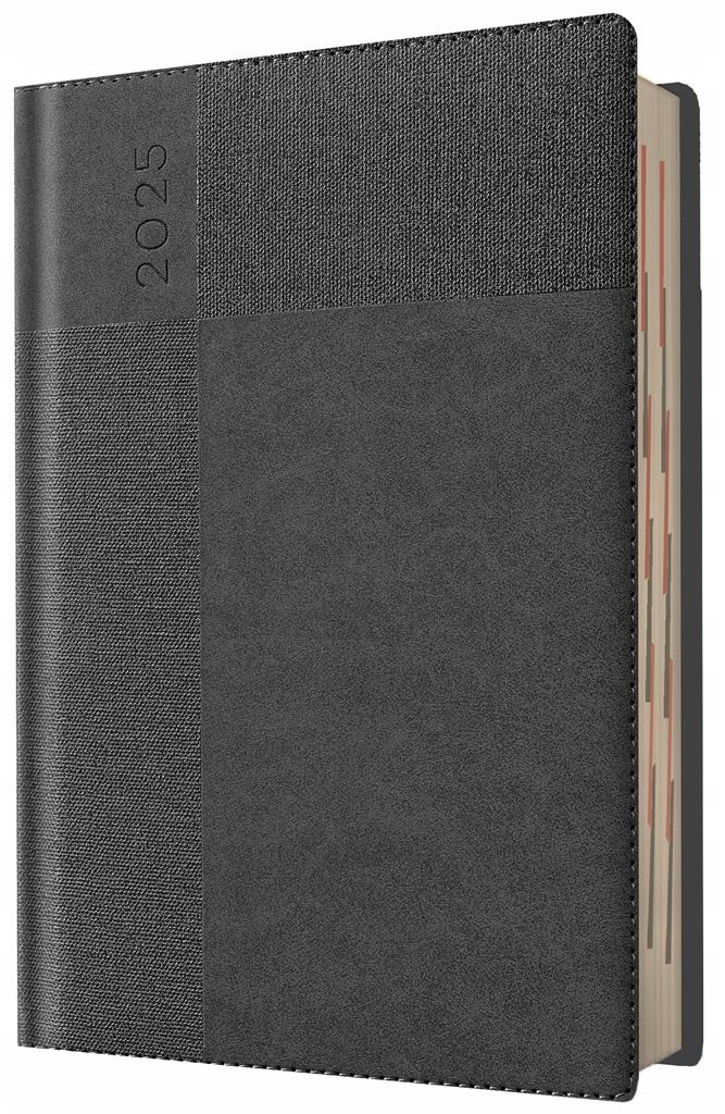KALENDARZ KSIĄŻKOWY A5 DZIENNY NA 2025 ROK FORMAT: A5 DZIENNY Wykończenie: Nowoczesna oprawa skomponowana z materiału jednolitego i ekoskóry. Zakładka w kolorze okleiny Barwione brzegi kalendarza Tłoczony rocznik, przeszycia, łączenia materiałów Wymiary: 21 cm x 15 cm, format A5 Układ: dzień na stronie (sobota z niedzielą są na jednej stronie) Podział godzinowy dni roboczych 6:00-18:00 Imieniny, święta Wschody i zachody słońca Ilość stron: 324 stron Kalendarium: skrócone 3-letnie kalendarium, kalendarium dzienne (PL, GB, D) z układem skróconego rocznego, stronę na notatki, imieniny, święta, Zodiak, wschody i zachody Słońca, fazy Księżyca, numeracja tygodni, kolorowa mapa Polski Termoprzebarwialna oprawa na tekturze z gąbką umożliwia wykonanie tłoczenia matrycą, personalizacji laserowej i nadruków.