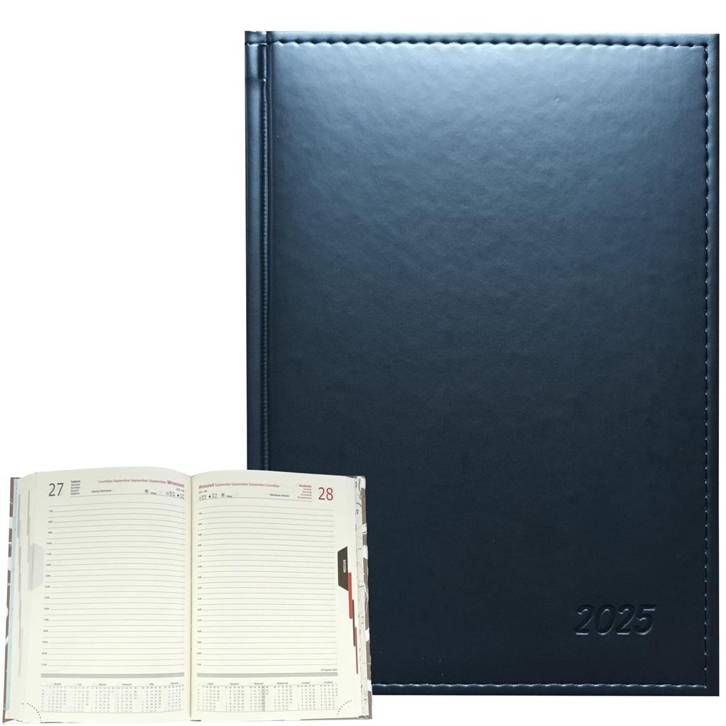kalendarz formatu A5, układ dzienny, okładka z ekoskóry, papier chamois