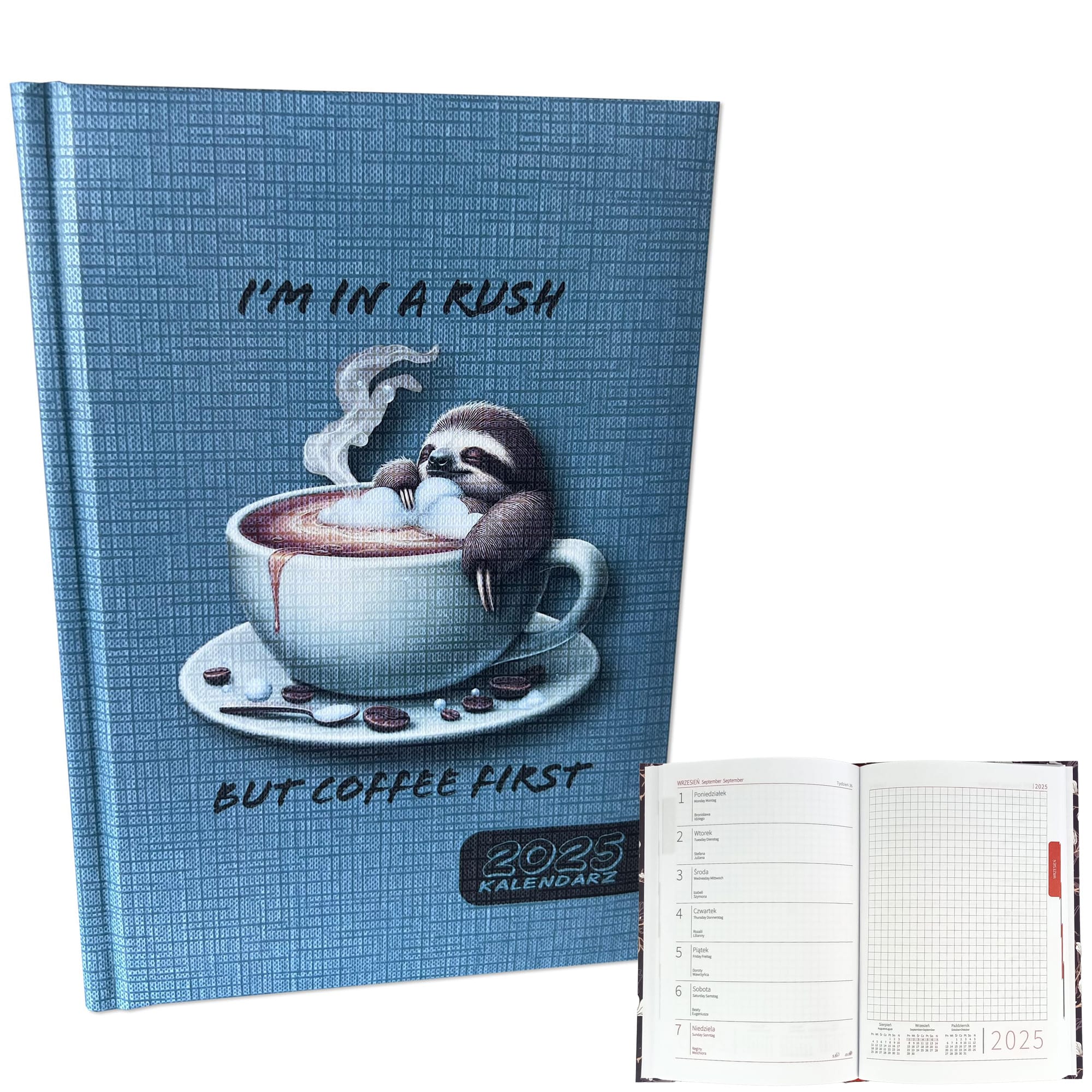 Opakowanie Kalendarz 2025 A5 tygodniowy Leniwiec Kawa