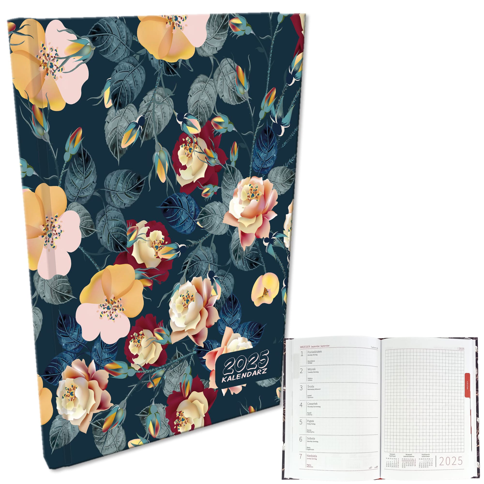 * kalendarz formatu A5, układ tygodniowy, okładka aksamitna soft touch