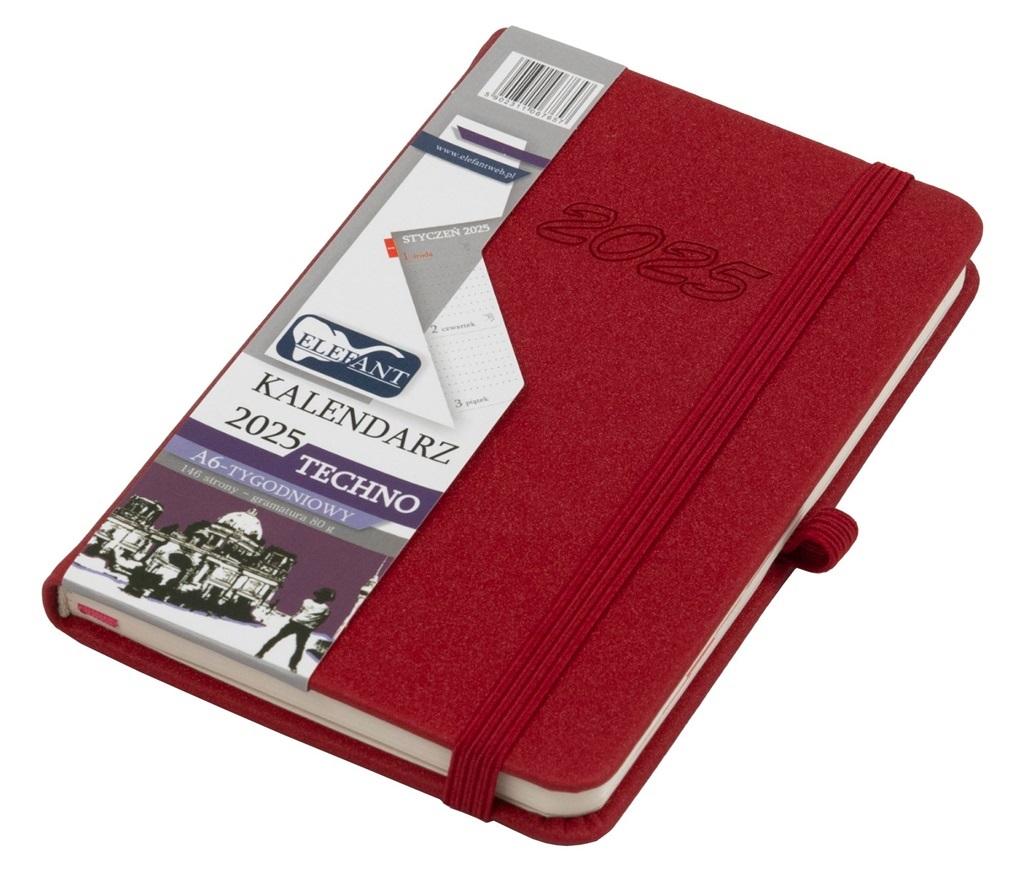 wewnątrz: plan roku i rozkład roku 2025, terminy ferii zimowych, święta oficjalne i zwyczajowe, protokół powypadkowy w przypadku stłuczki, notes, skorowidz teleadresowy, kalendarium dodatkowe na 2024-2025-2026 rok
