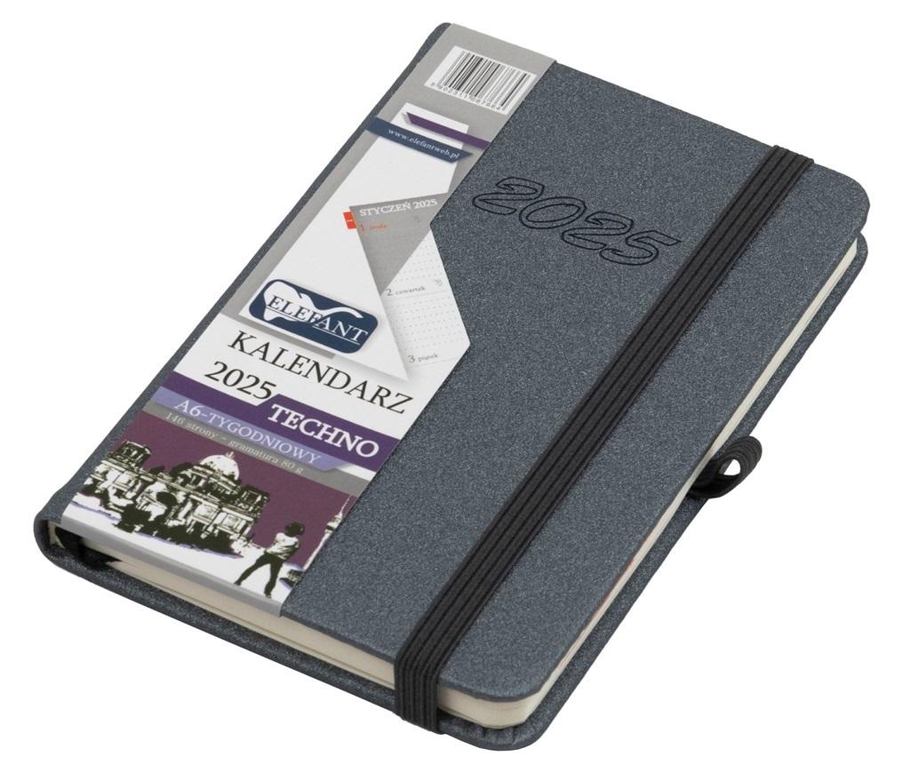 wewnątrz: plan roku i rozkład roku 2025, terminy ferii zimowych, święta oficjalne i zwyczajowe, protokół powypadkowy w przypadku stłuczki, notes, skorowidz teleadresowy, kalendarium dodatkowe na 2024-2025-2026 rok