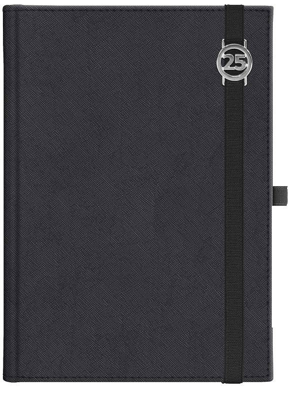 Terminarz książkowy w oprawie Cross z metalową datą na gumce zamykającej . Blok kalendarza szyty nićmi. Terminarz posiada rozbudowaną część informacyjną. Drukowany na papierze kremowym; kapitałka i tasiemka kremowe; posiada wycinane registry miesięczne; przejrzysty układ graficzny kalendarium; oprawa umożliwia wykonanie tłoczenia i personalizacji kalendarza.