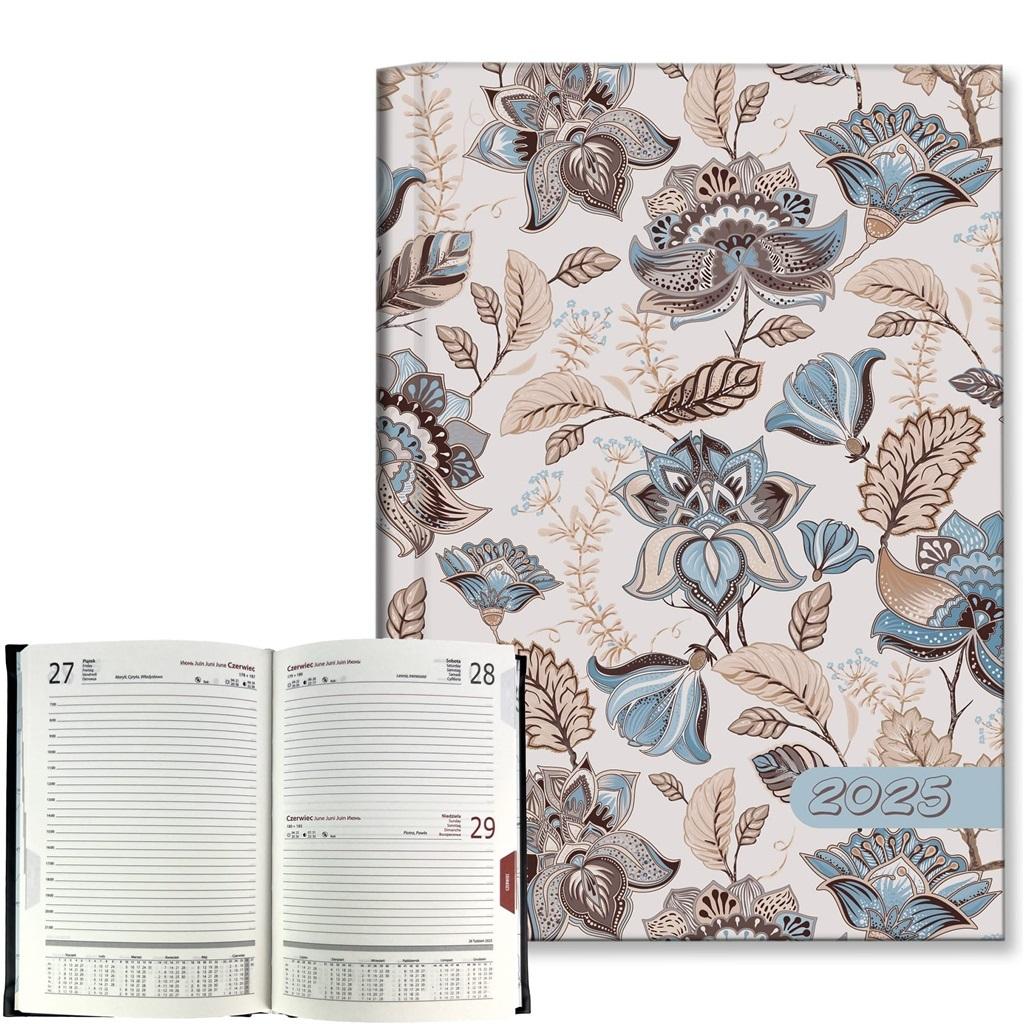 wykończenie: Blok kalendarza szyty oraz dodatkowo klejony, wzmocniony krepą, tasiemka oraz kapitałka w kolorze kremowym