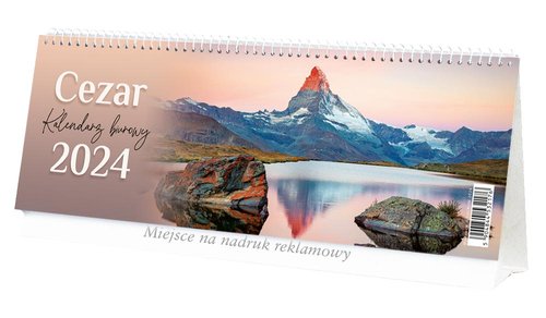 Specyfikacja kalendarza biurowego - BF1 Cezar format kalendarza – 29,5 x 13 cm; kalendarz stojący poziomy z odwracanymi kartami; kalendarium: 28 kart; 1 tydzień na stronie; bieżąca numeracja dni i tygodni; imieniny; pola na notatki; fazy Księżyca; znaki Zodiaku; święta państwowe i kościelne oraz dni świąteczne pracujące; skrócone kalendarium 3-miesięczne; kalendarium w języku polskim, angielskim, niemieckim i ukraińskim; wysokość cyfr w głównym kalendarium: ok. 9 mm blok kalendarium: 95 x 295 mm; papier: środek – offset 80 g/m2, okładka – kreda błysk 150 g/m2, stojak – karton 325 g/m2; druk: środek – dwustronny, dwukolorowy; okładka – jednostronny, barwny + lakier offsetowy; stojak o profilu trójkątnym; biała oprawa spiralowa grzbietu (umożliwiająca swobodny obrót kartek); waga 1 egz. – 110 g.