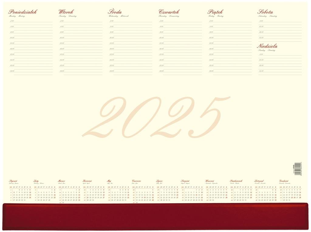 Praktyczny podkład na biurko z tygodniowym planem zajęć i dużym obszarem do notowania, zaprojektowany specjalnie do biura. Kalendarium na 2025 rok.