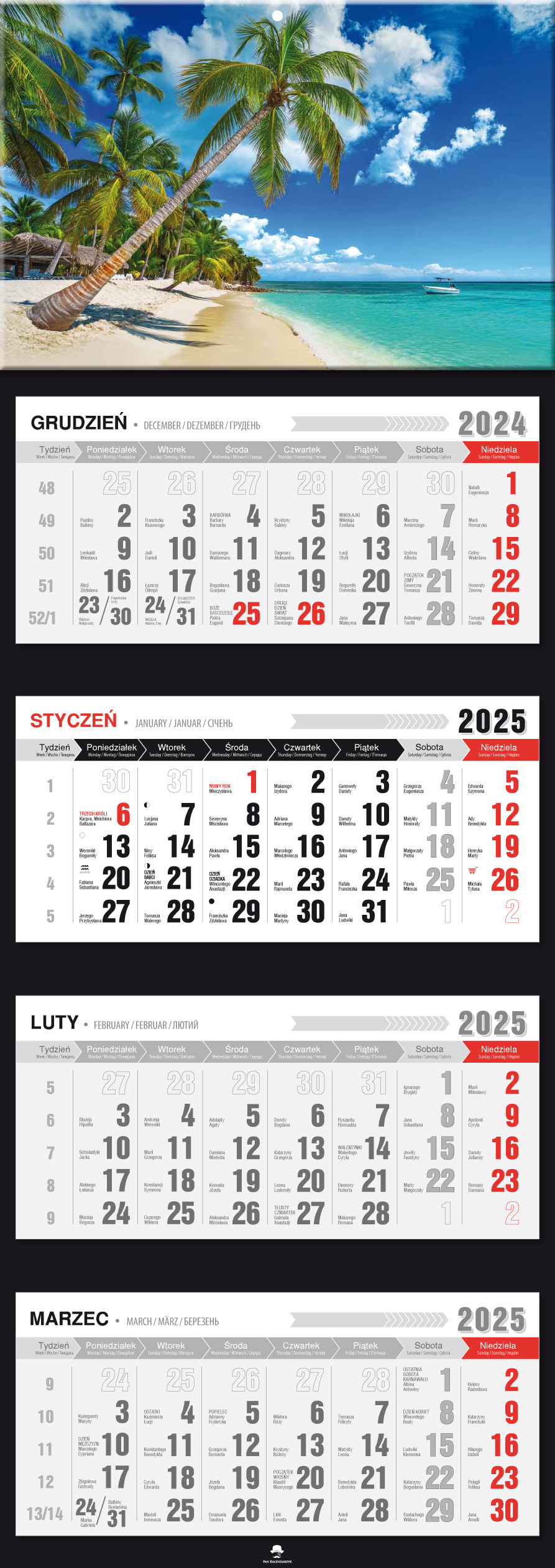 podtytuł: Kalendarz 2025 CZTERODZIELNY PREMIUM z wypukłą główką KT-4 V.21 TROPIK