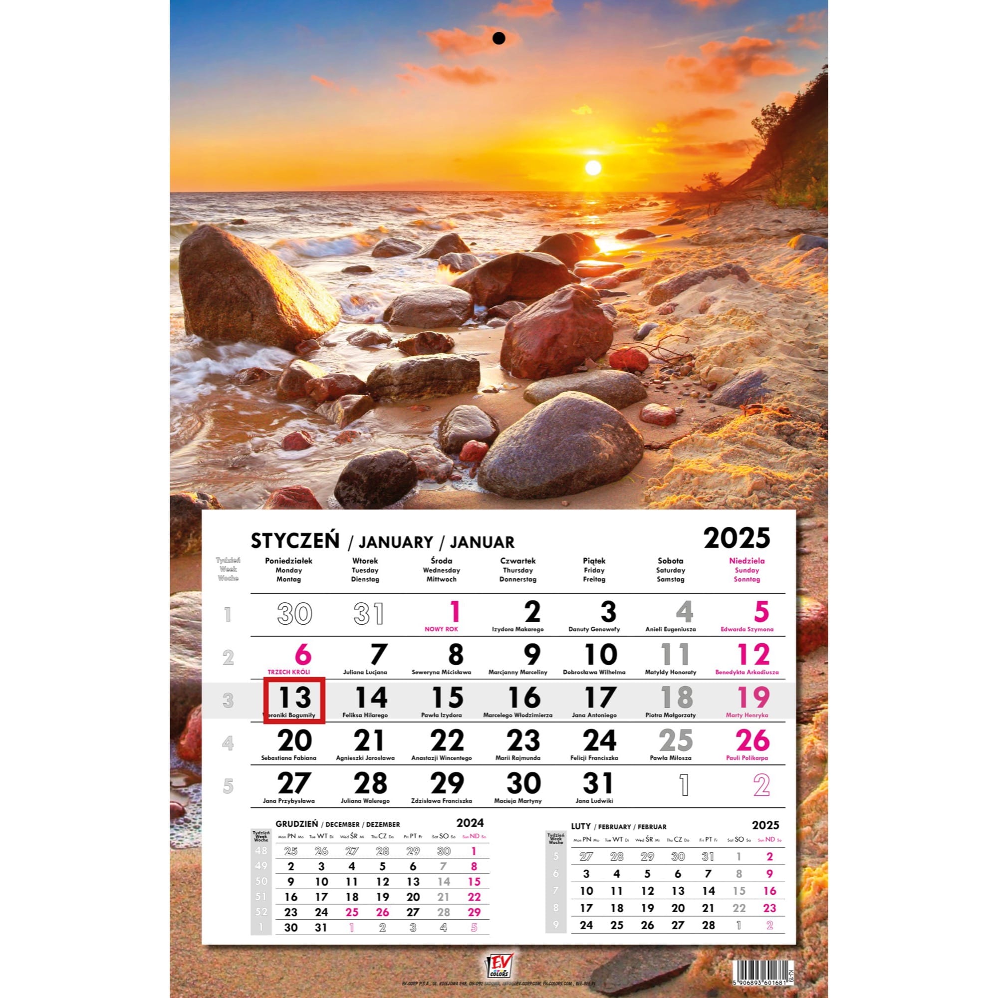 Kalendarz 2025 jednodzielny główka płaska Bałtyk