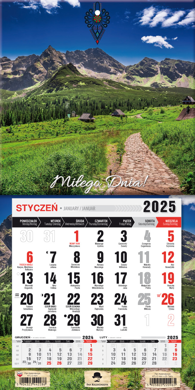 podtytuł: Kalendarz 2025 Trójdzielny JEDNODZIELNY MINI Z MAGNESEM KTJ-2M V.23 TATRY