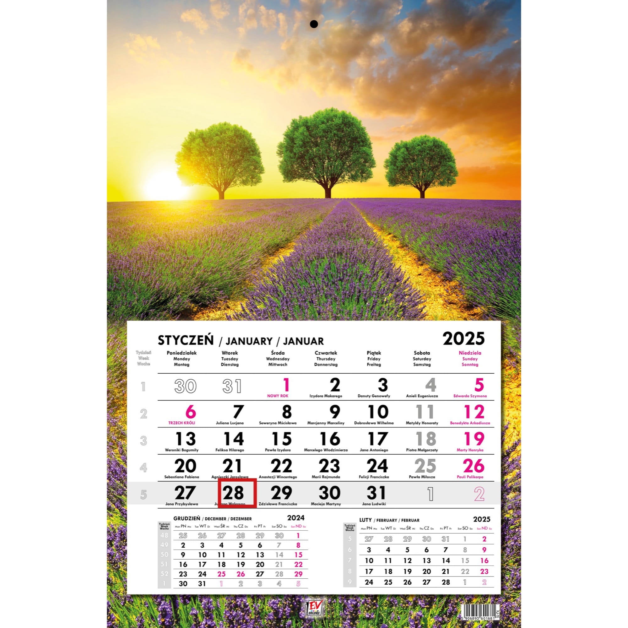 Kalendarz 2025 jednodzielny płaski Prowansja