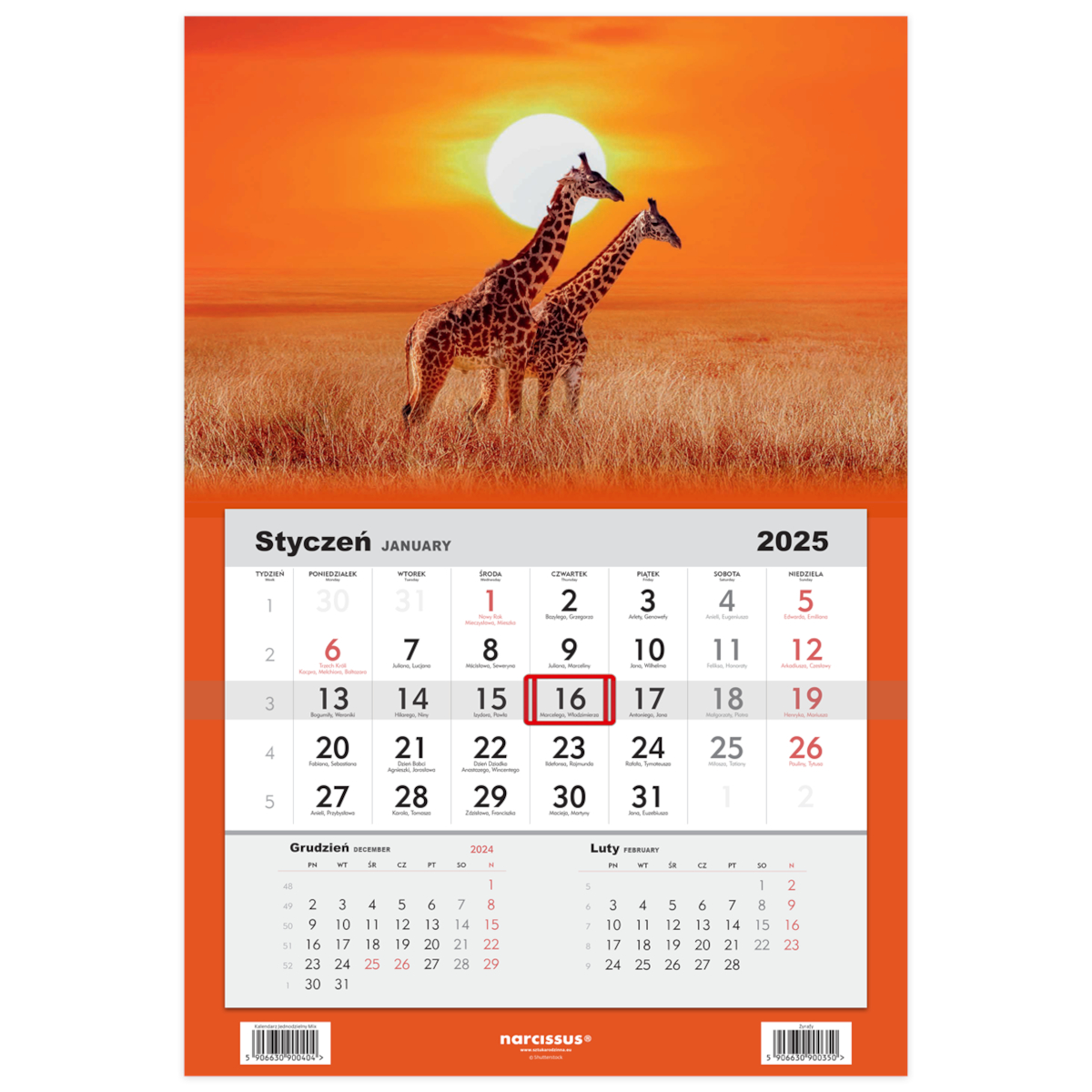 Opakowanie Kalendarz 2025 Jednodzielny Żyrafy