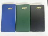 okładki plastikowe z folii metalizowanej w kolorze niebieskim, brązowym,
