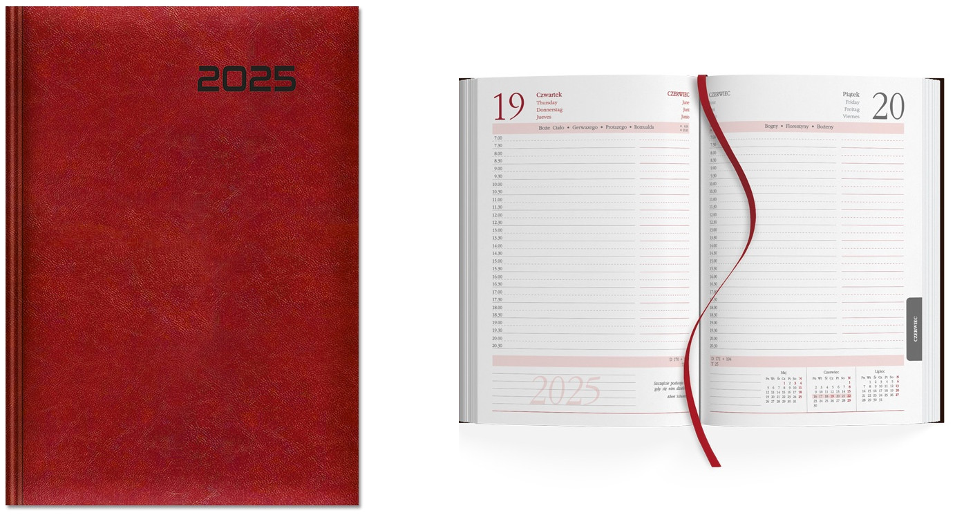 Kalendarz 2025 książkowy A5 dzienny czerwony SK2