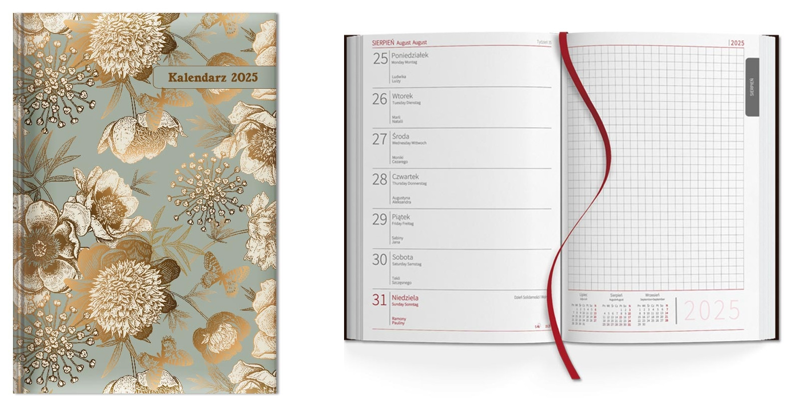 Opakowanie Kalendarz 2025 książkowy A5 tygodniowy złote kwiaty SK1