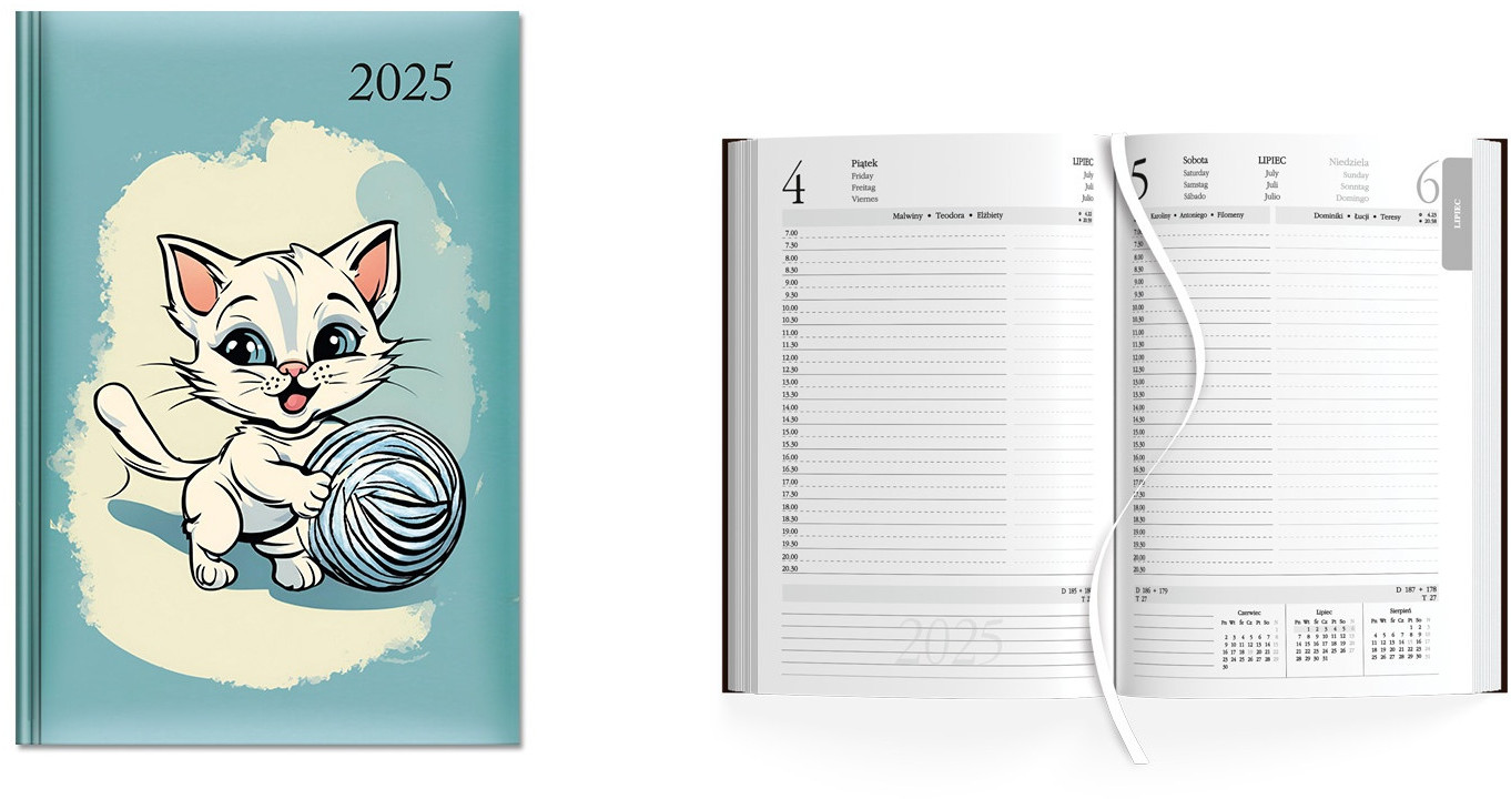 Opakowanie Kalendarz 2025 książkowy B6 dzienny Kotek