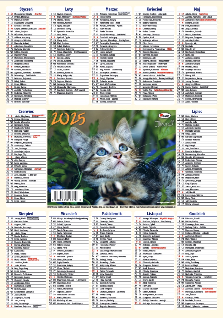 Opakowanie Kalendarz 2025 listkowy 1szt.mix