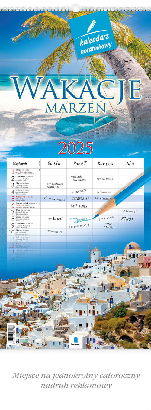 Kalendarz 2025 Notatnikowy Wakacje marzeń