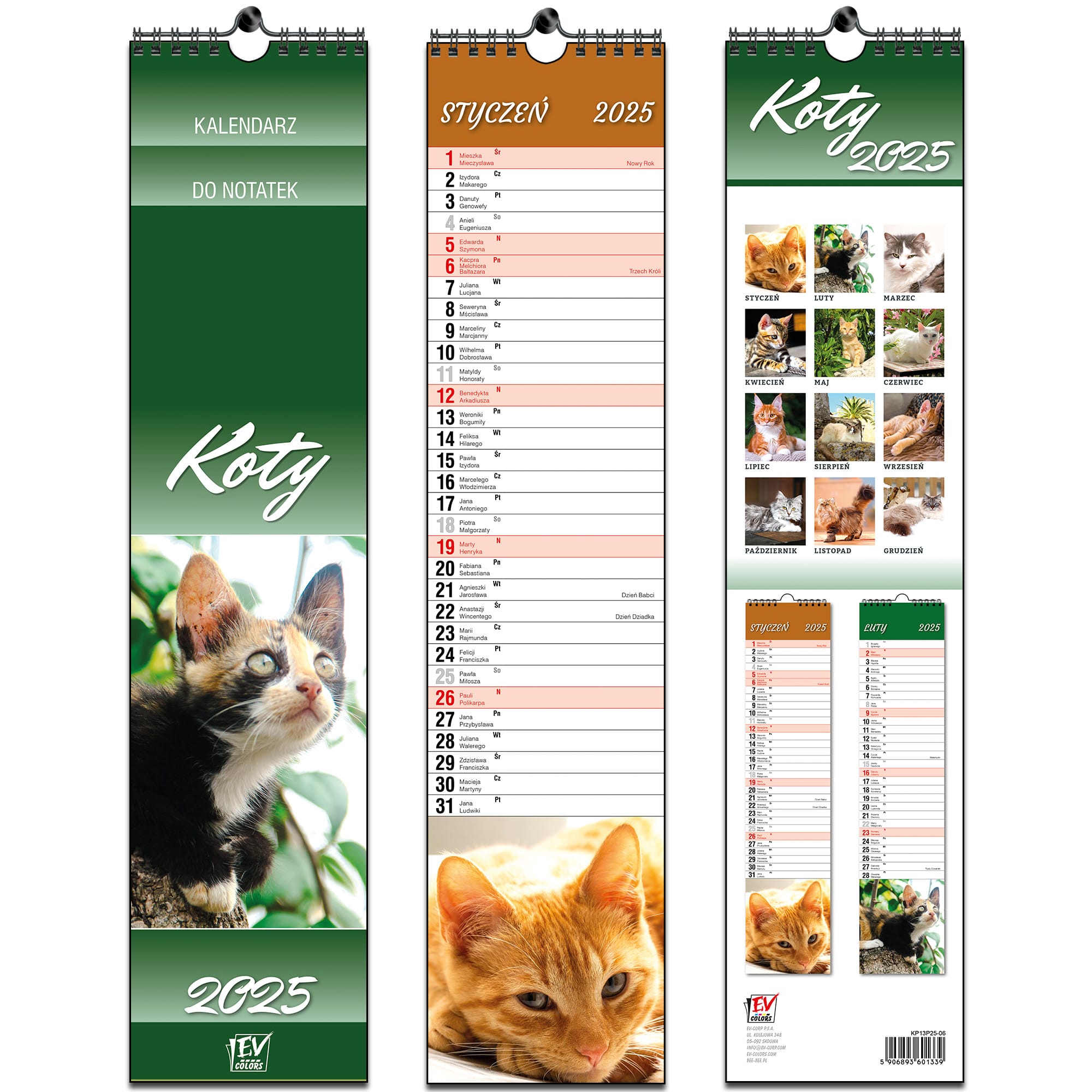Opakowanie Kalendarz 2025 paskowy 13 planszowy Koty