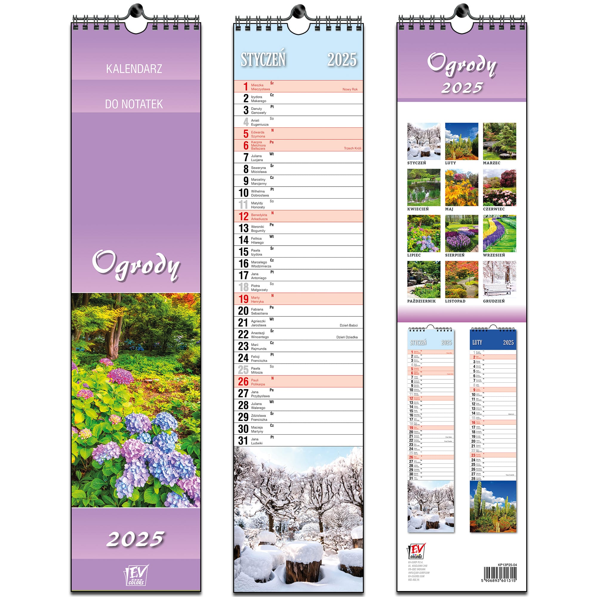 Kalendarz 2025 paskowy 13 planszowy Ogrody