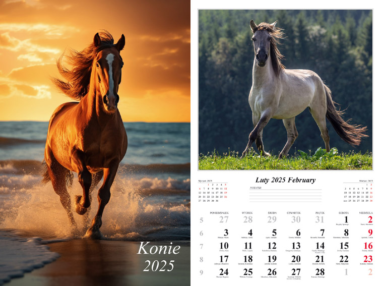 Kalendarz 2025 ścienny Konie