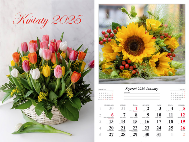 Opakowanie Kalendarz 2025 ścienny Kwiaty