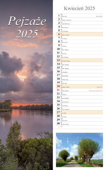 Opakowanie Kalendarz 2025 ścienny pasek Pejzaże