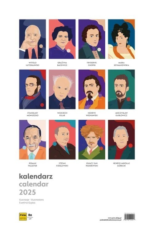 Kalendarz ścienny PWM na 2025 rok to coś więcej niż codzienna organizacja to sposób na wprowadzenie sztuki i inspiracji do Twojego życia. Każdą kartę miesiąca zdobi portret słynnego kompozytora, stworzonego przez Ewelinę Gąskę w ramach serii "Małe Monografie". Dzięki subtelnemu połączeniu muzyki klasycznej i wyjątkowych grafik kalendarz nie tylko pomoże Ci zaplanować dzień, ale również codziennie przypomni o pięknie muzyki i sztuki, nadając wnętrzu unikalny charakter.