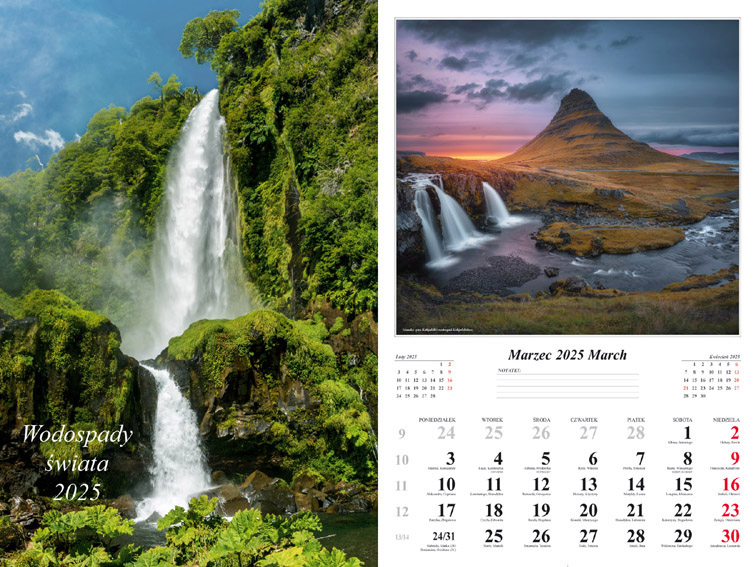 Opakowanie Kalendarz 2025 ścienny Wodospady świata