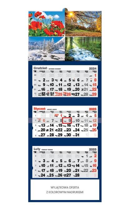 Kalendarz 2025 trójdzielny 4 pory roku