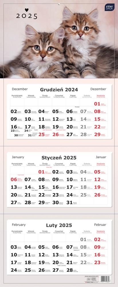 Kalendarz 2025 trójdzielny 82,5x34cm Koty