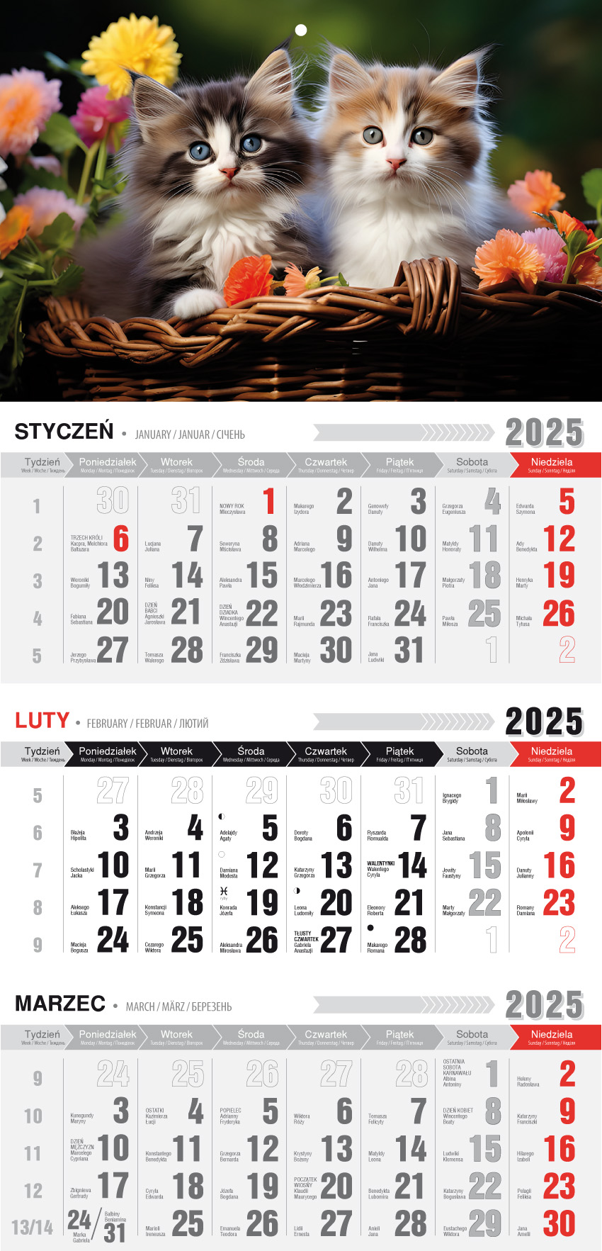 Opakowanie Kalendarz 2025 Trójdzielny ekonomiczny Kotki