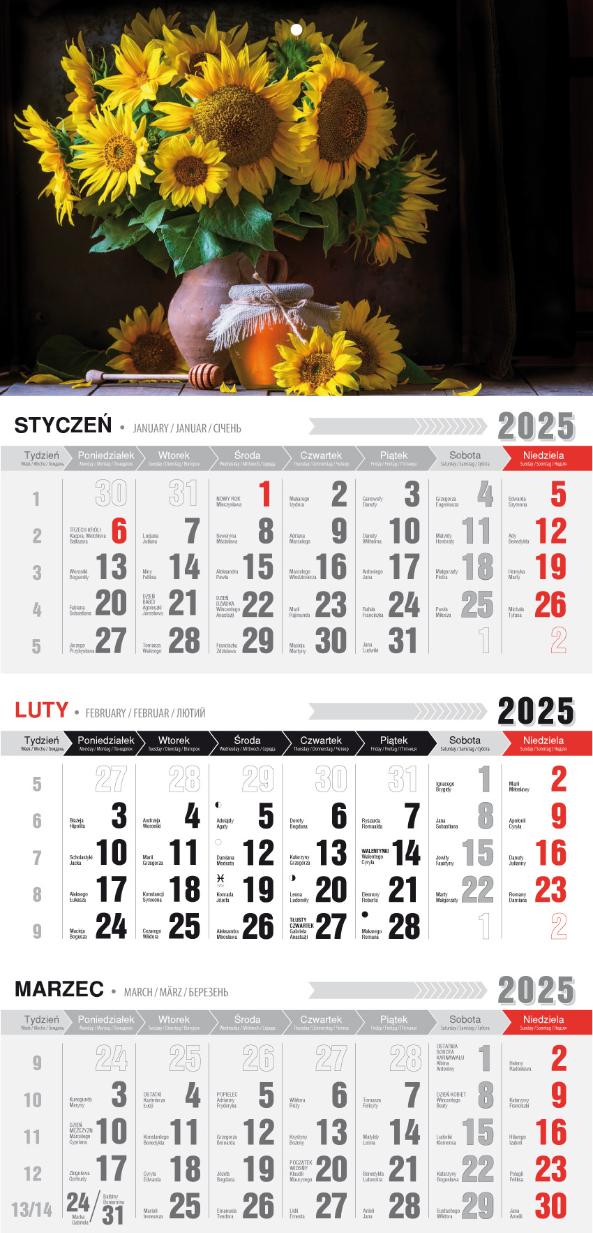 Kalendarz 2025 Trójdzielny ekonomiczny Słoneczniki