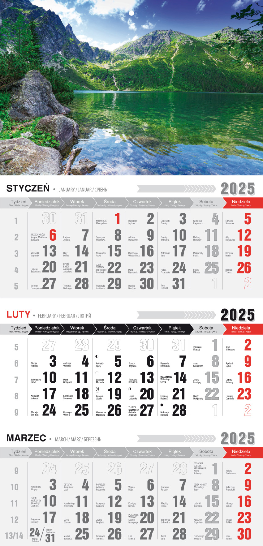 Kalendarz 2025 Trójdzielny ekonomiczny Tatry