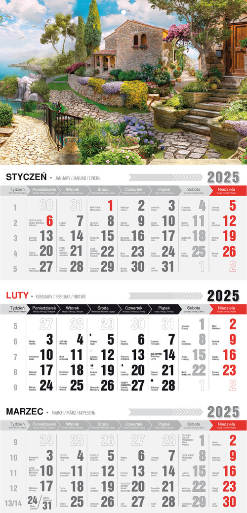 Kalendarz 2025 Trójdzielny Jednoplanszowy z ma