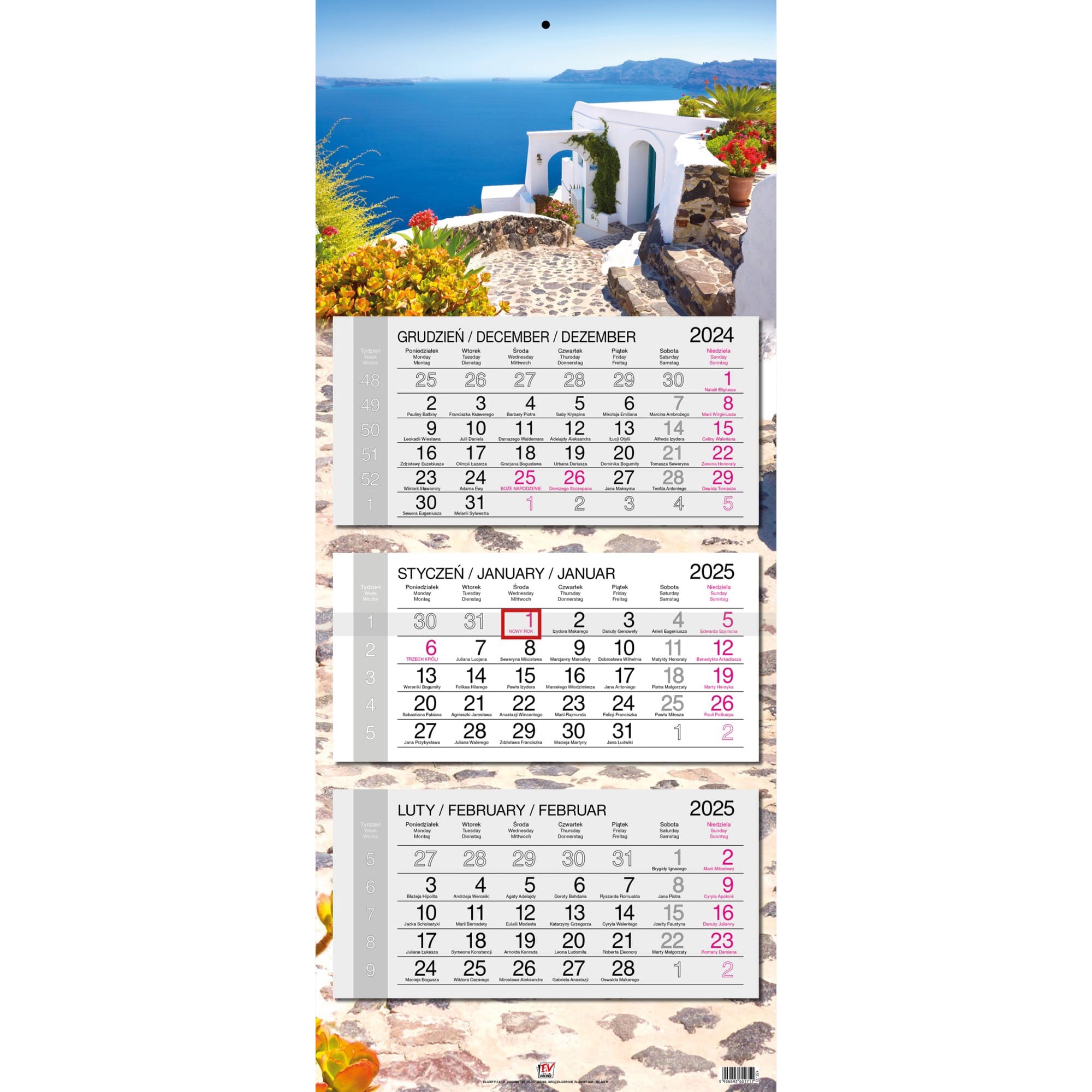 Kalendarz 2025 trójdzielny gł. płaska Santorini