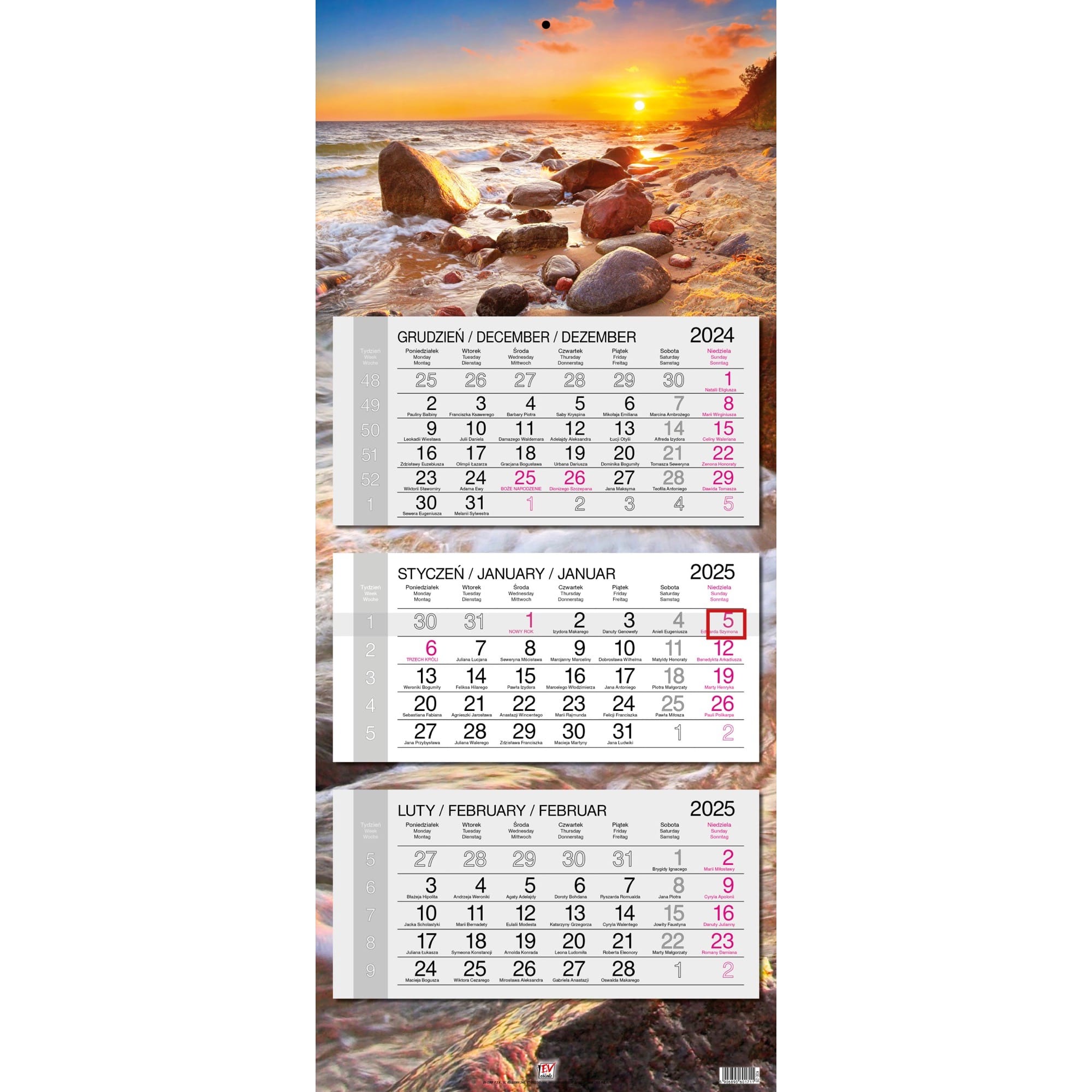 Kalendarz 2025 trójdzielny główka płaska Bałtyk