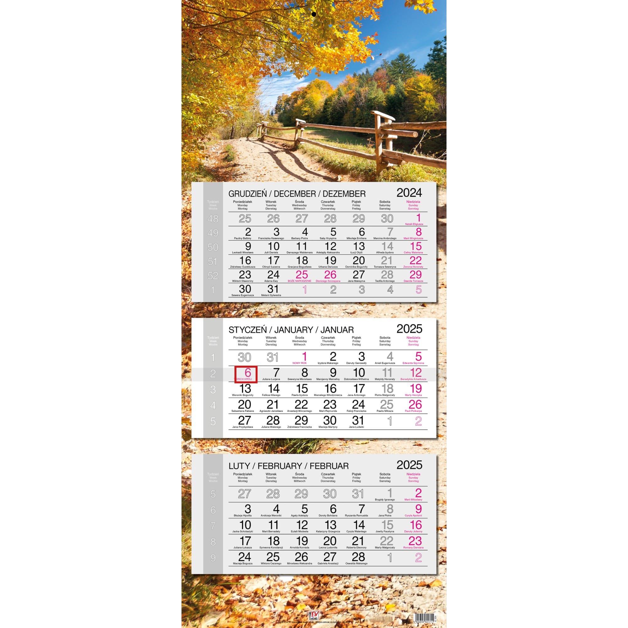 Kalendarz 2025 trójdzielny główka płaska Krajobraz