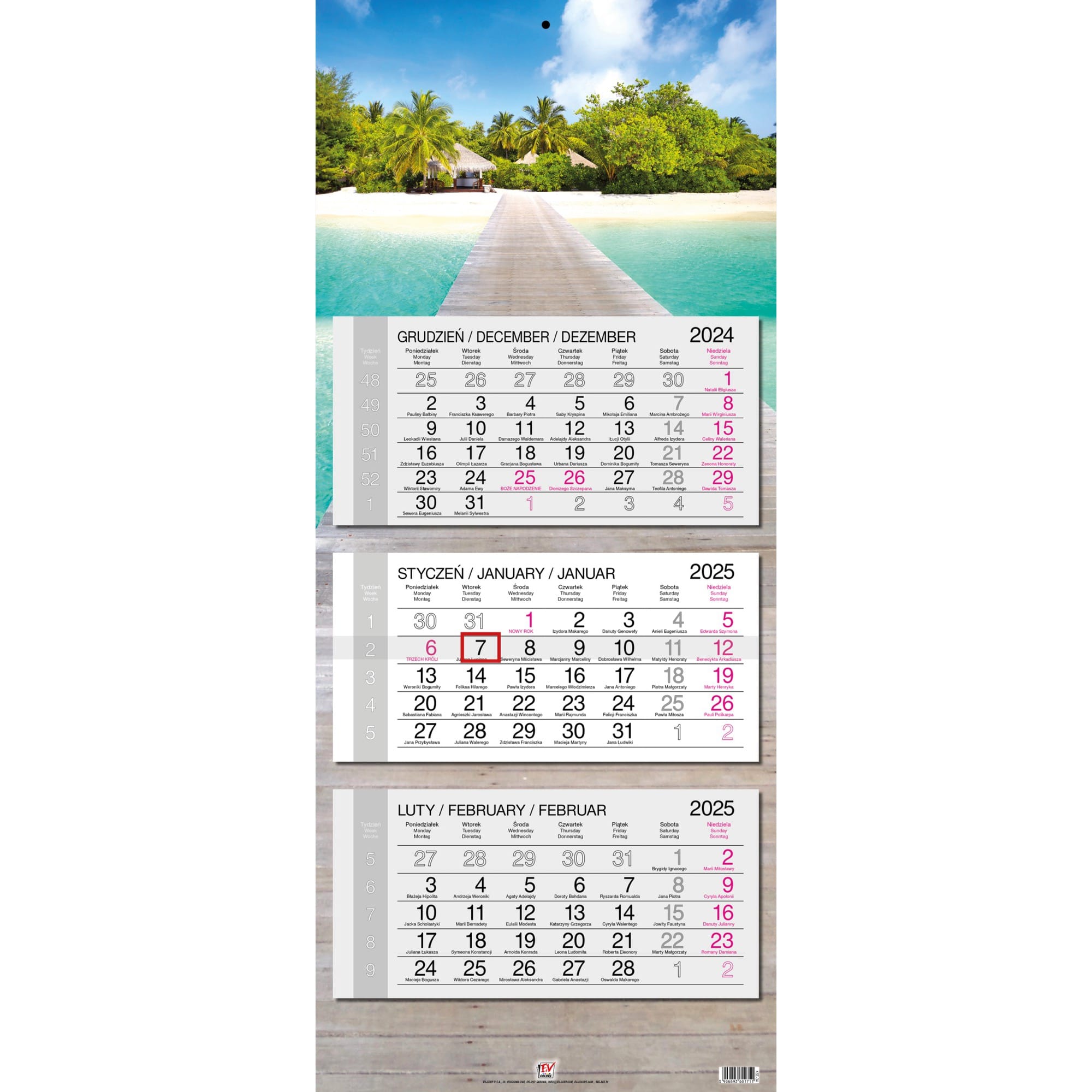 Kalendarz 2025 trójdzielny główka płaska Malediwy
