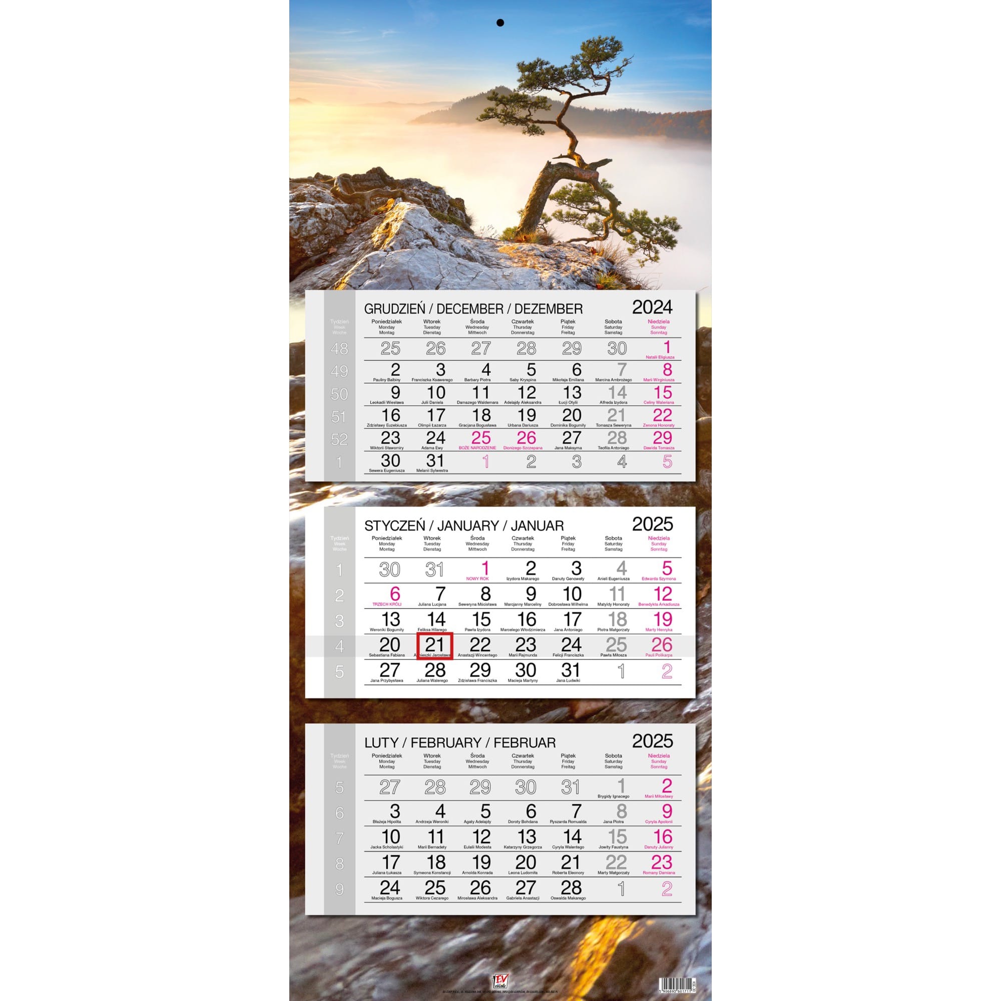 Opakowanie Kalendarz 2025 trójdzielny główka płaska Pieniny