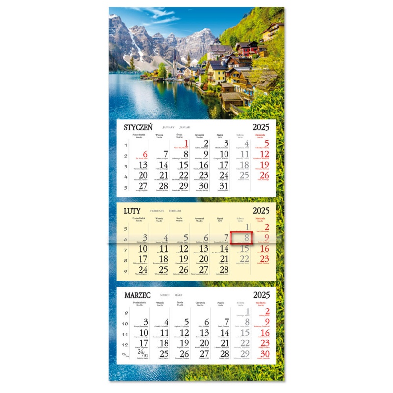 Kalendarz 2025 trójdzielny Górska wioska SB8-17