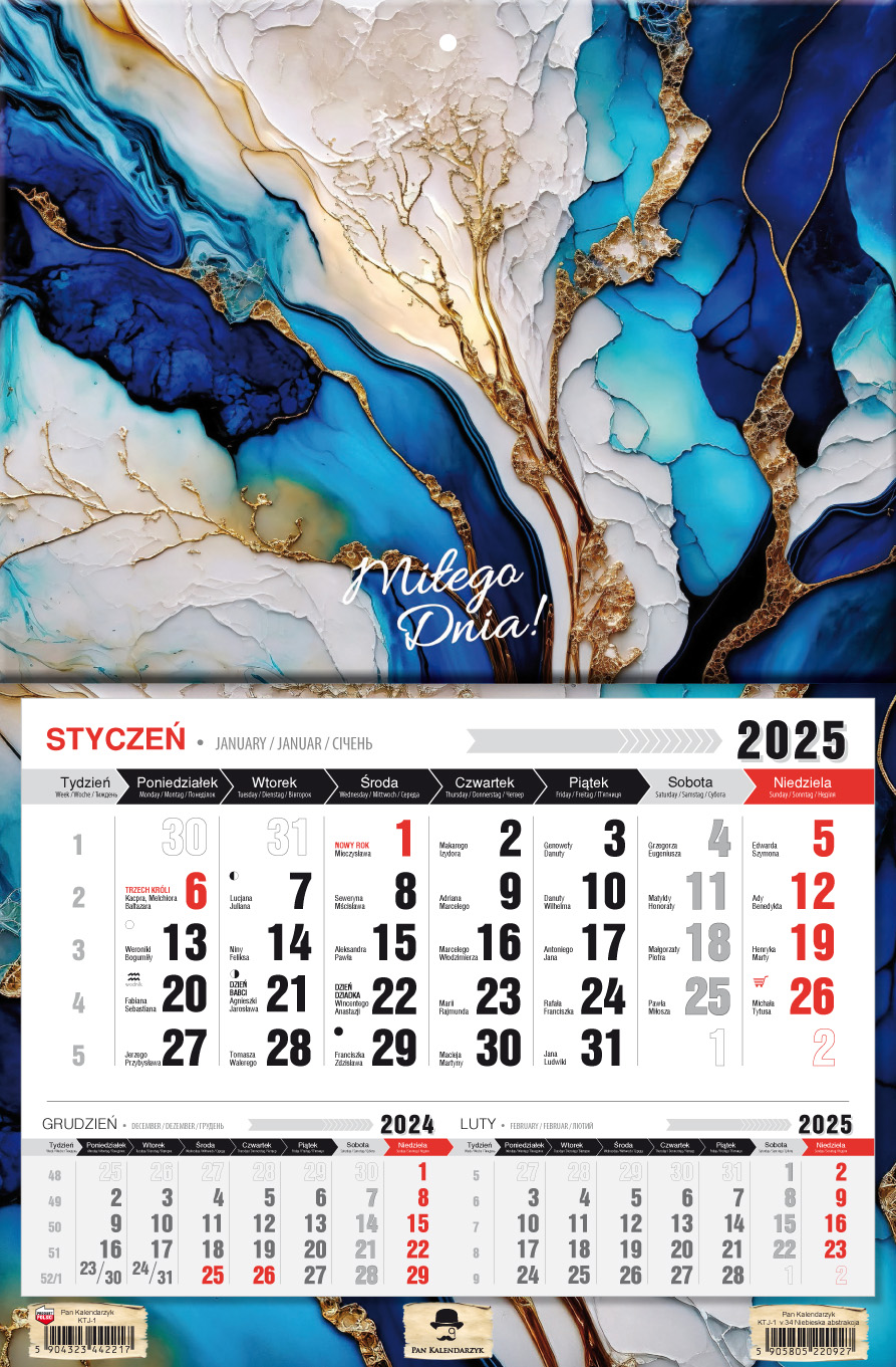 podtytuł: Kalendarz 2025 Trójdzielny JEDNODZIELNY KTJ-1 V.34 NIEBIESKA ABSTRAKCJA