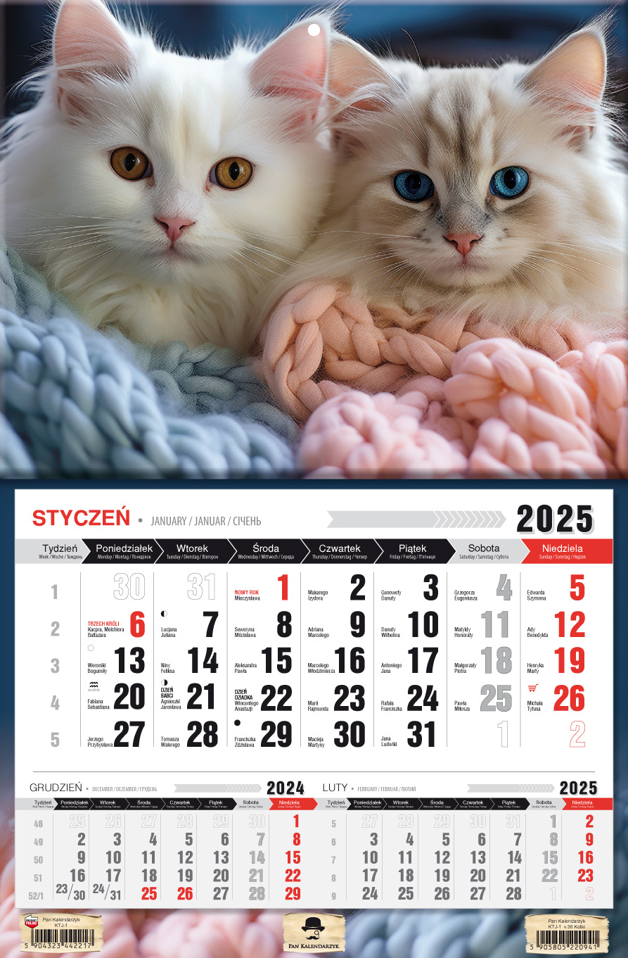 Kalendarz 2025 Trójdzielny jednodzielny Kotki